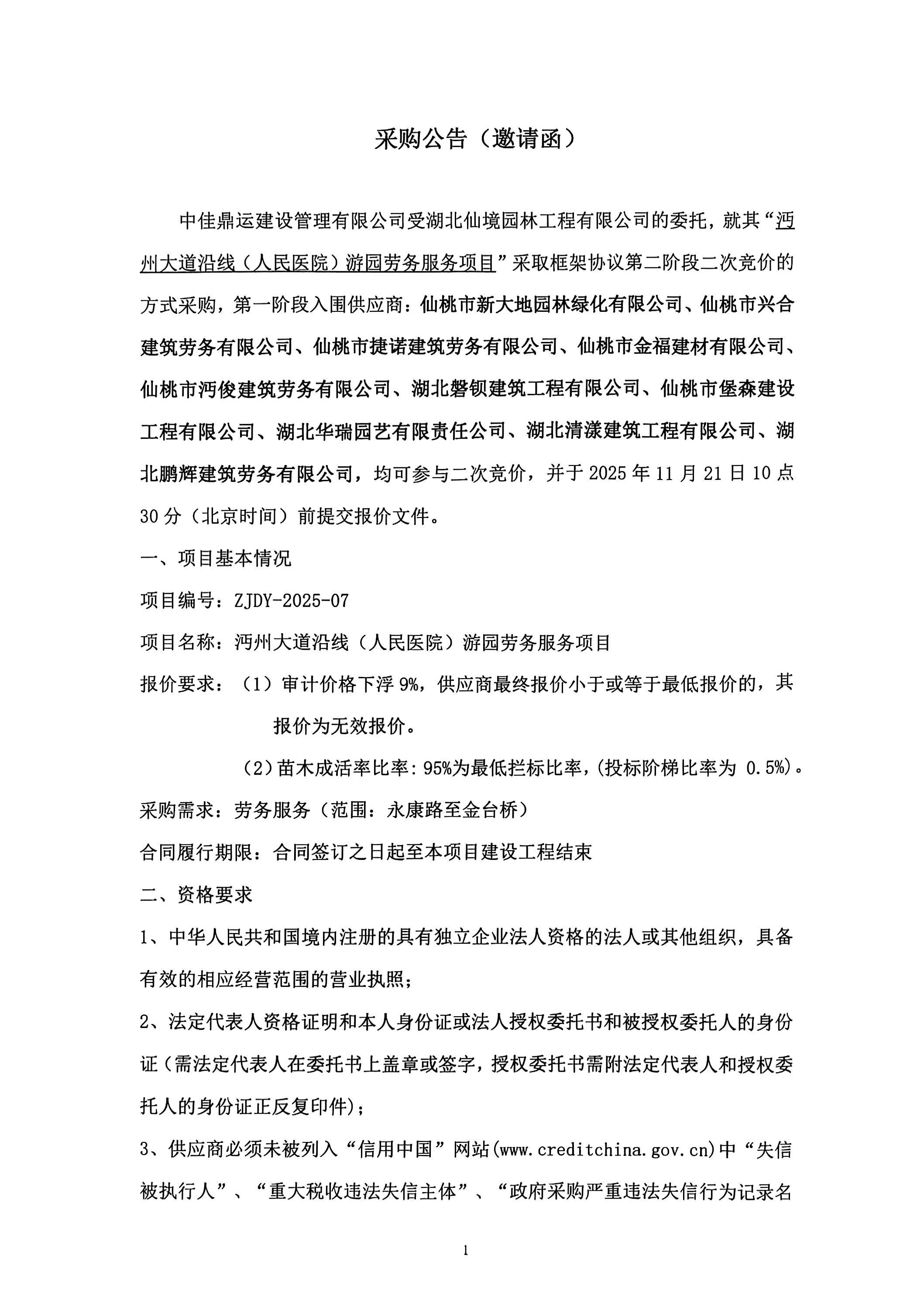 沔州大道沿线(人民医院)游园劳务服务项目--采购公告