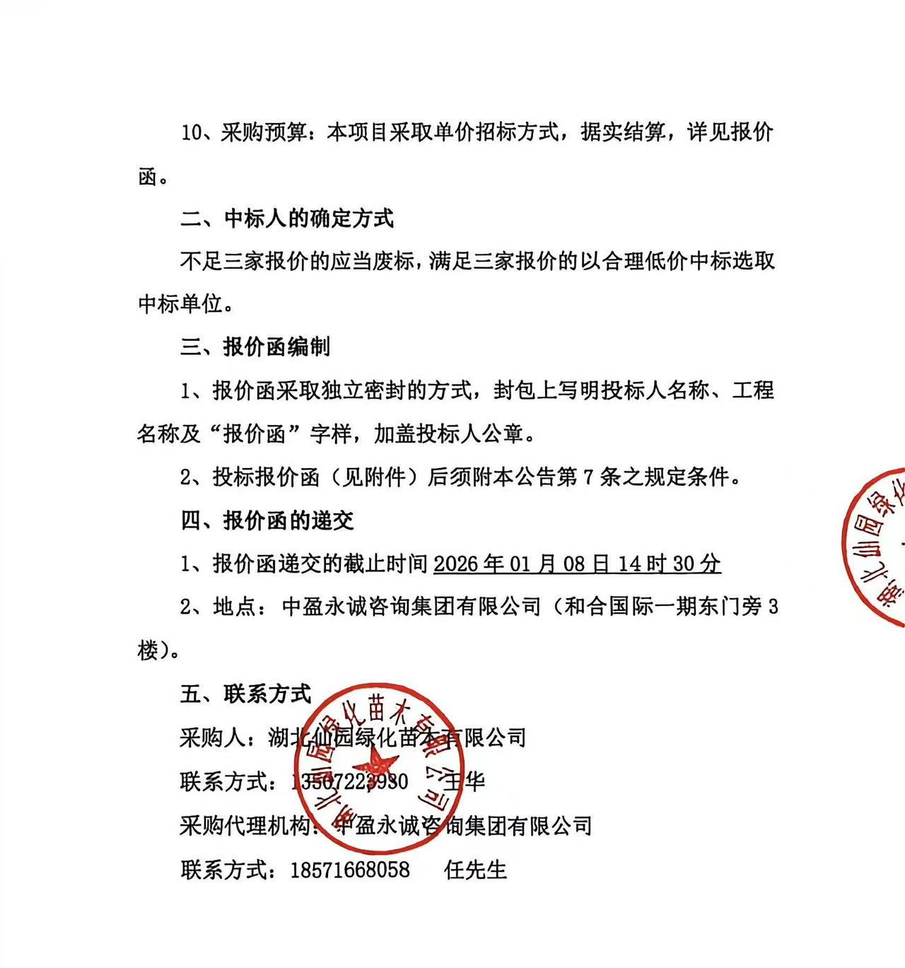 湖北仙园绿化苗木有限公司紫薇嫁接改良辅材及劳务服务项目竞争性报价公告